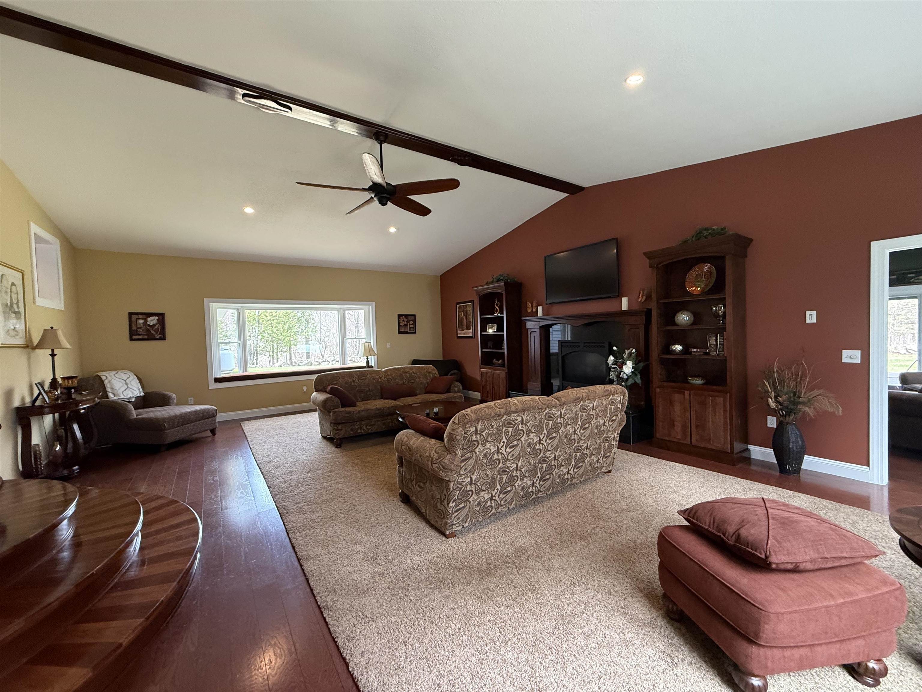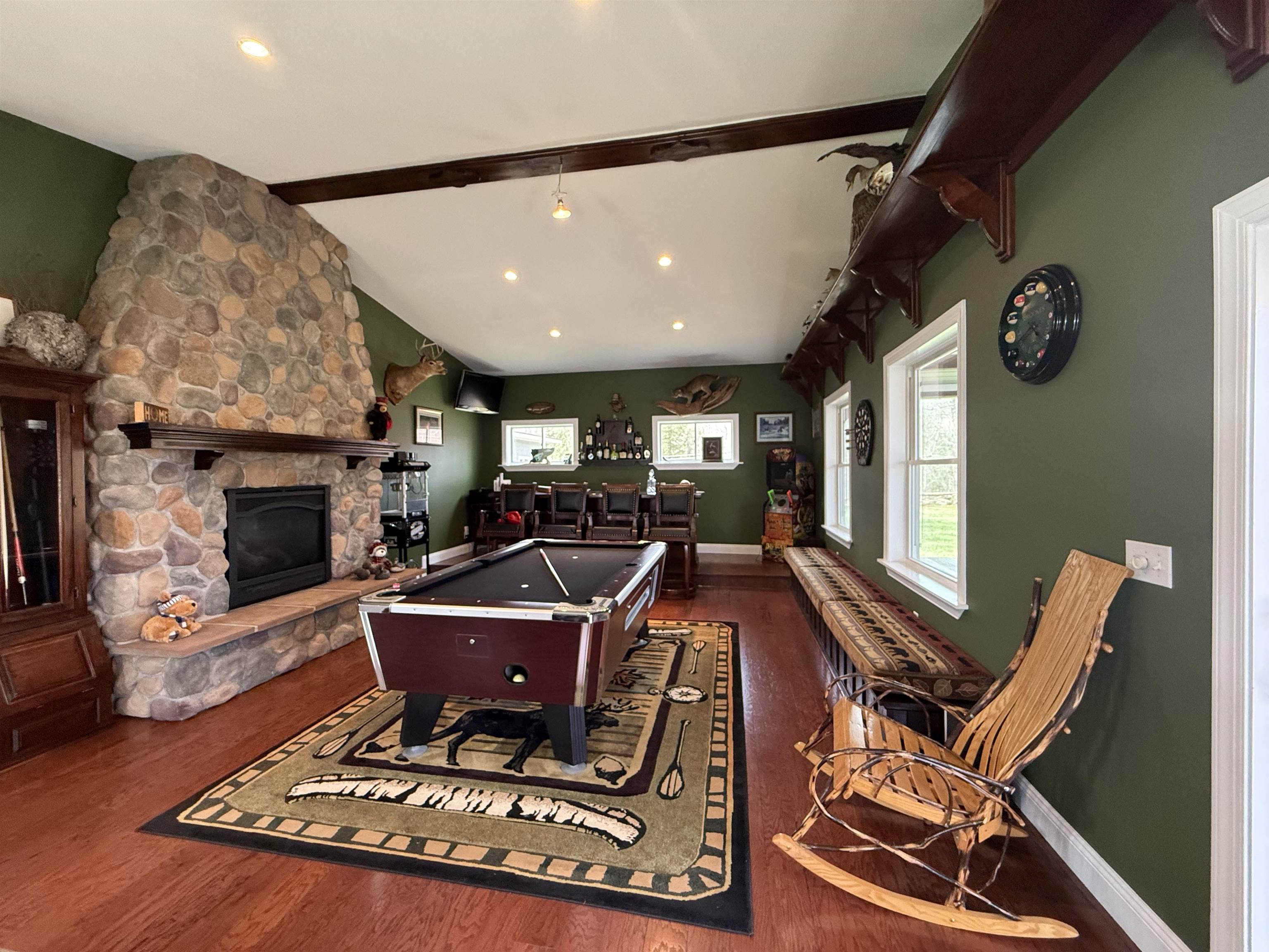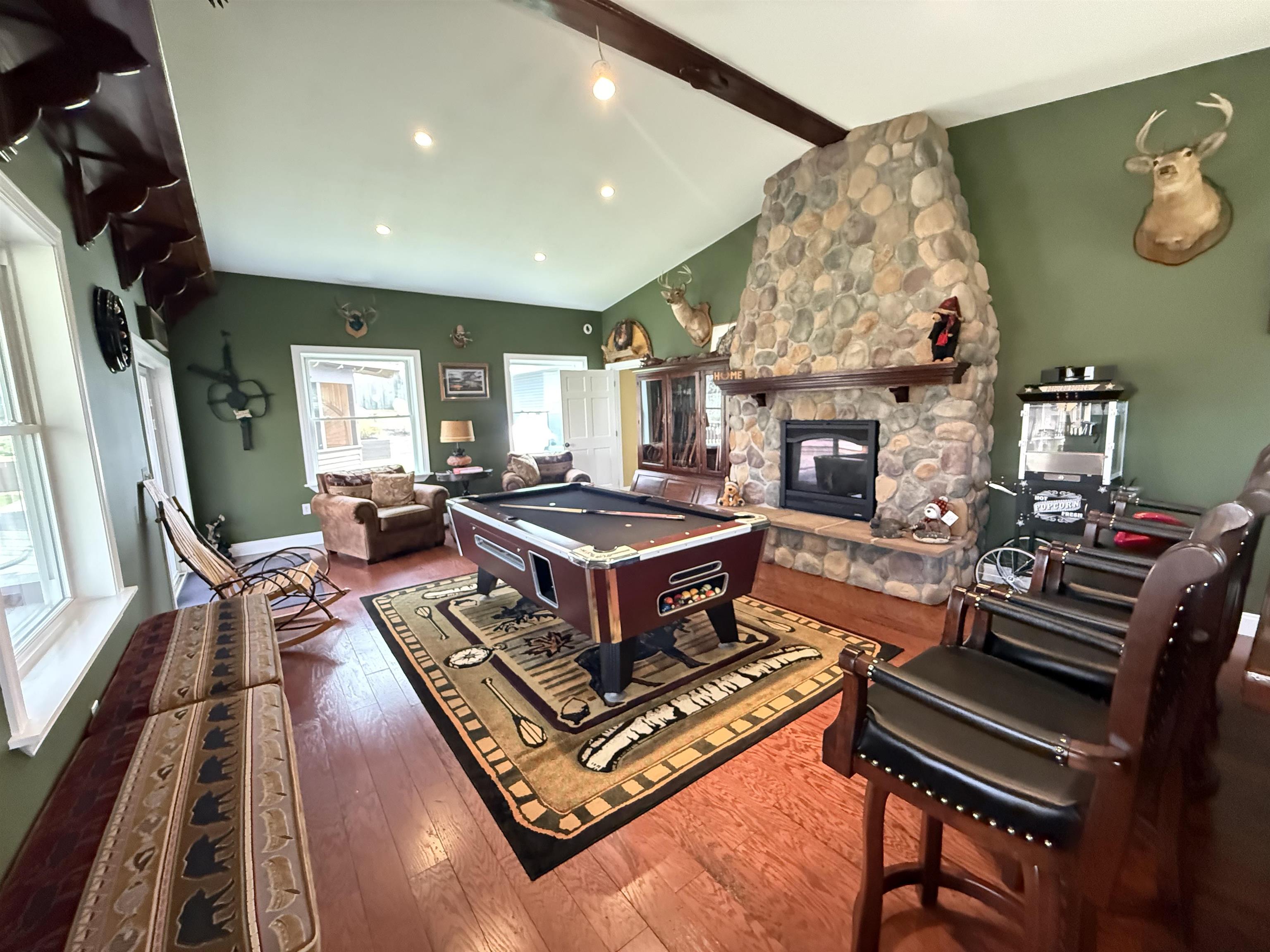 This PRICED TO SELL listing offers buyers a unique and rare opportunity All in one purchase! Imagine...Working for yourself or having a manager... taking over (turnkey) Baker's Sizzling Grill (no expense was spared for all the still immaculate, state-of-the-art equipment that was installed brand new 4 years ago, plus an accessible reception and checkout area with fire and water feature, prep room and its own garage for storage and deliveries and separate employee entrance, 1/2 bathroom, paved and lined parking lot ...established as a thriving take-out restaurant with an excellent reputation and consistent, (profitable sales records to prove it). Attached to a dream, quality, remodeled and constructed, meticulously maintained 3/4-bedroom (one is the primary suite with cedar walk-in closet and new primary bathroom with double vanity and walk-in tile shower), (split floor plan- primary at one end, 2 bedrooms and office or 3 bedrooms and full bathroom at the other) living space with a modern kitchen featuring quality hickory cabinets, solid surface countertops. travertine tile backsplash, walk-in pantry, peninsula with breakfast bar and 4-piece appliance package that stays. The addition...down a few decorative, hand-crafted cherry stairs is a magnificent 22' x 30' living room with propane fireplace, giant bay window with a seat and hand-scraped cherry hardwood floors leading to a one-of-a-kind 18'x 30' recreation room with gorgeous floor-to-ceiling stone fireplace with a propane insert, wall length bench seating, high shelves for collectibles and a gorgeous bar and Amish crafted stools that stay; this takes you to the exit to your resort like, difficult to describe backyard oasis complete with an Adirondack style covered deck - stepping to decking encircling the 18'x40' oval above ground pool, leading to an octagon hot tub enclosure with benches and inlayed wood features (owner unsure if the hot tub works), paver stone pathways to the pre-fab concrete-cooking fireplace and enormous easily maintained elevated garden/sitting area with waterfall leading to a pond. With all of that there's still plenty of lawn all outlined by large stone features. Not mention the 3-year-old, 44' x 40' insulated, finished heated garage addition with 2 addition finished office spaces. The home is sided with cedar shake vinyl siding on top and decorative dry stack stone siding on the bottom; the covered front porch features a very attractive custom designed wood ceiling with recessed lights. The roof and circular paved driveway/ parking lot are 3-yearsold. The curb appeal is outstanding with the dry stack stone wall and land scaping as welcoming features, displaying the pride in ownership that is evident throughout the entire home and business. Everything for the business conveys with the sale and most furnishings in the home are negotiable. Qualified buyers are encouraged to do themselves a favor and schedule a showing to see this remarkable opportunity situated near the Racquette River and many state parks in the foothills of the Adirondacks.
